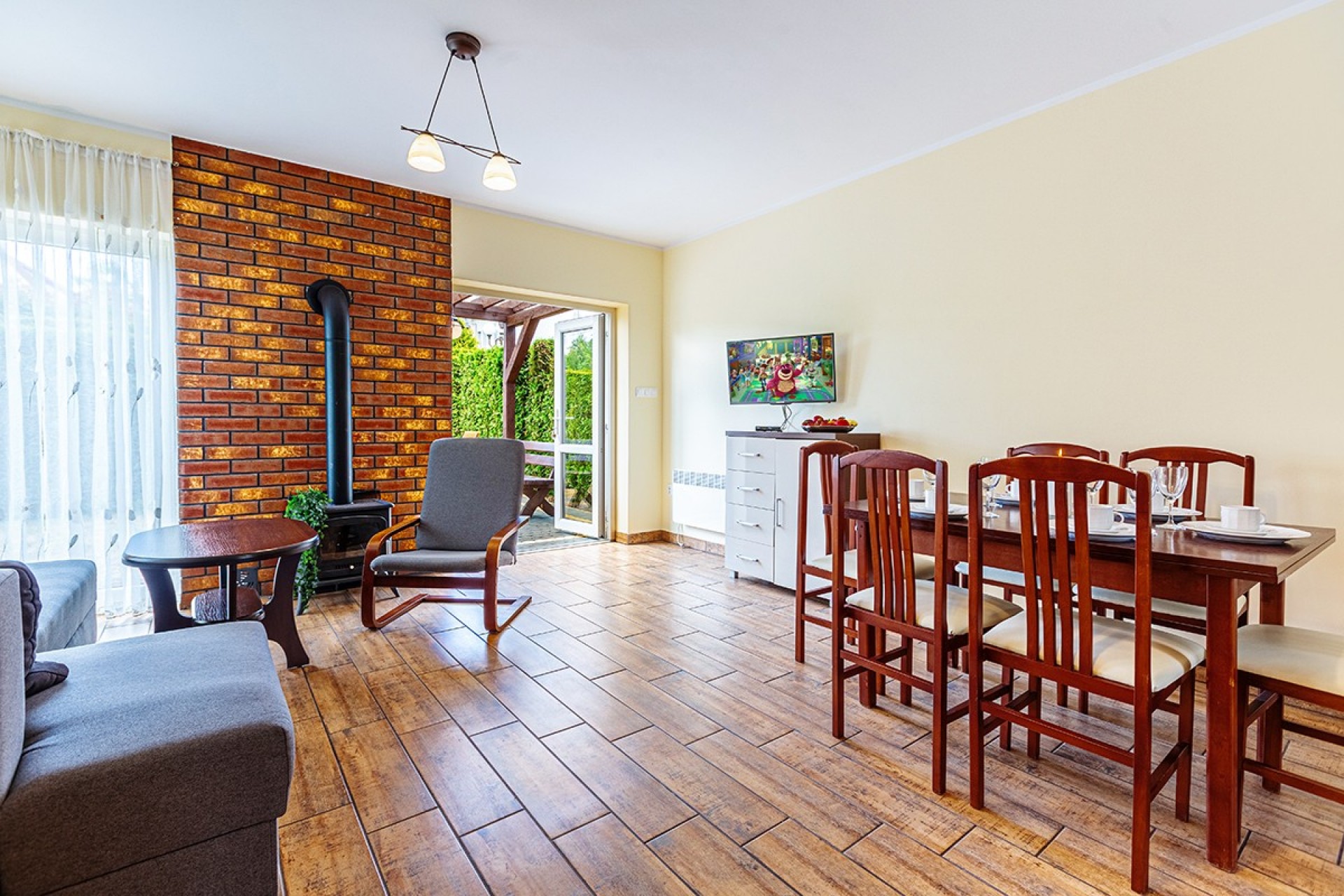 Domki o powierzchni 75 m2 zapewnią komfortowy wypoczynek dla jednej większej rodziny lub dwóch mniejszych, do 8 osób.