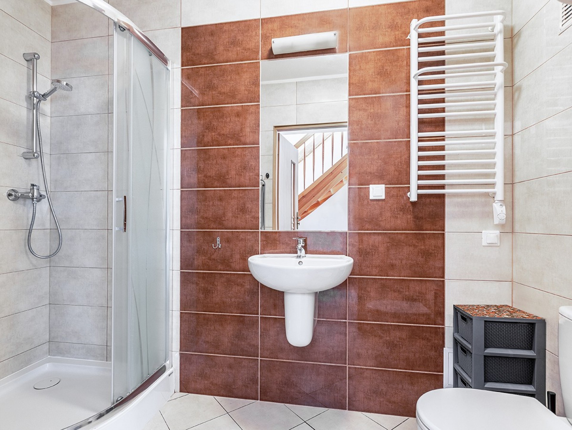 W niektórych domkach pomiędzy sypialniami znajduje się dodatkowa toaleta.