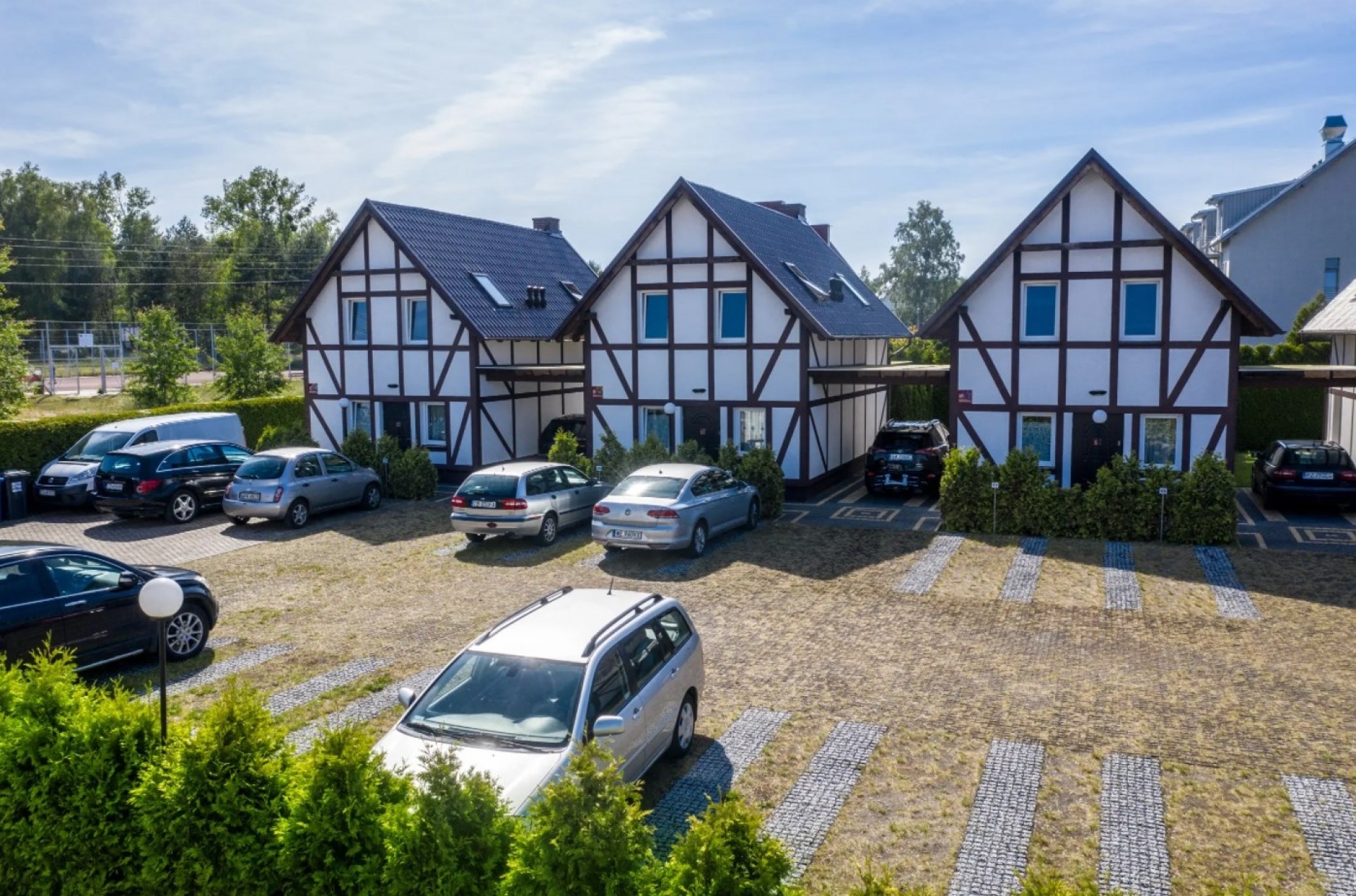 Każdy domek pomieści dwie mniejsze rodziny lub jedną dużą do 8 osób.